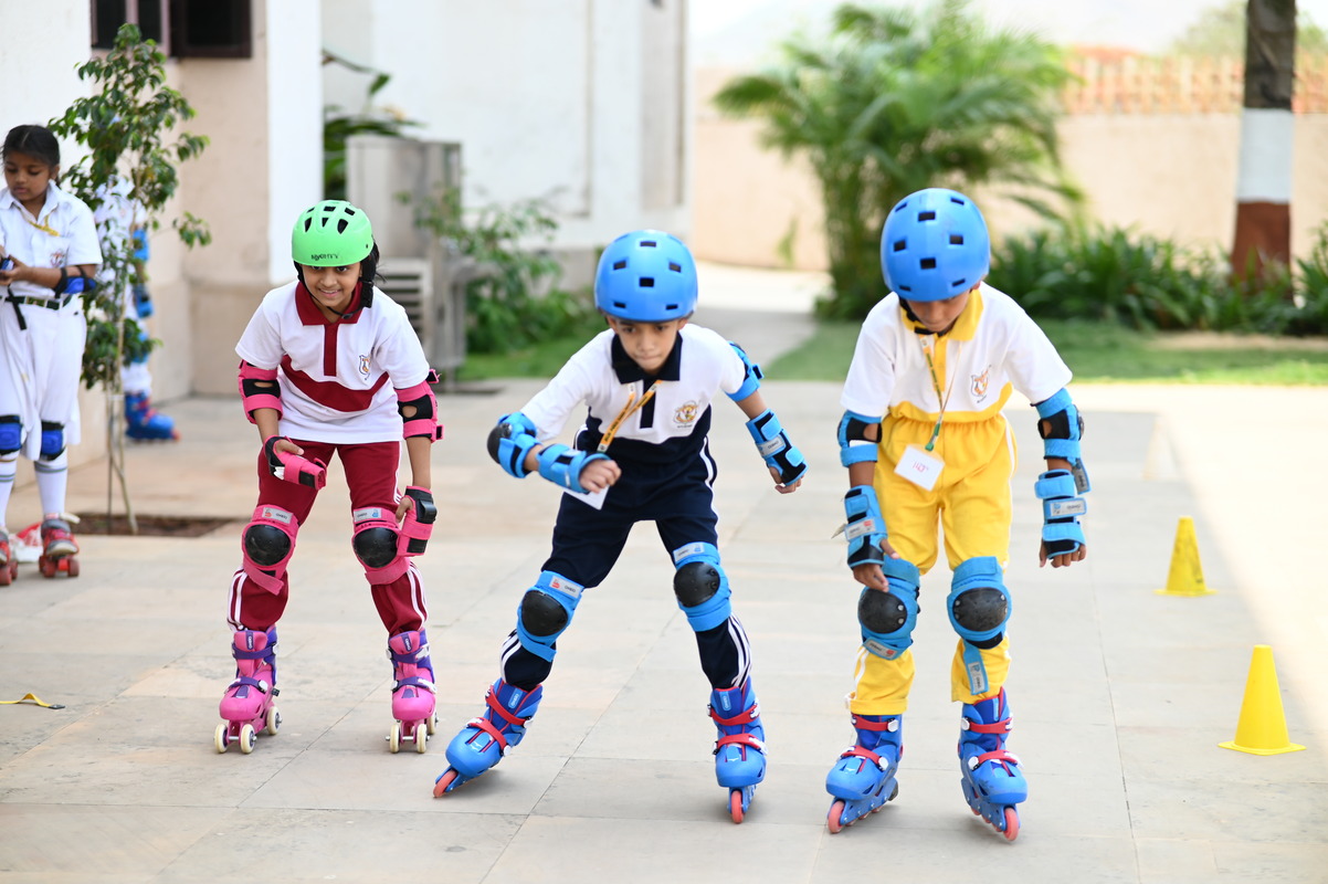 The campus contains well-lit airy classrooms, open air theatre, swimming pool, and spacious courtyards for indoor games.